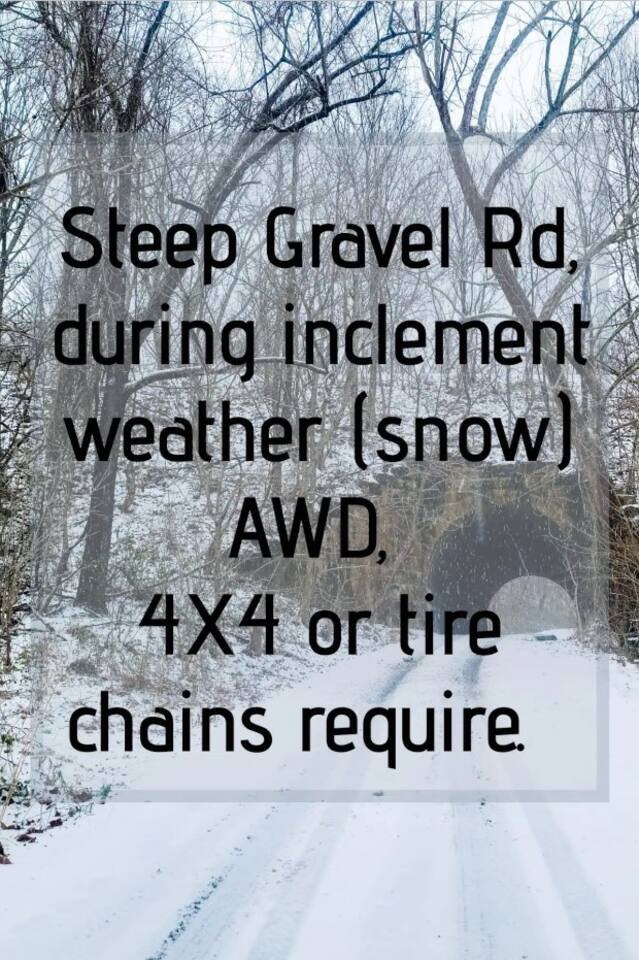 Note: Silox Getaway is located on a mountain road which has a steep gravel driveway . Please note that during inclement weather, such as snow or icy conditions, AWD, 4x4 or tire chains are required. For added precaution, we also highly recommend carrying tire chains, even if your vehicle has AWD or 4x4 capabilities Although regular pest control measures are taken, the property's location near the national park and in the woods makes it more likely for insects to find their way inside. The most common insects that may be encountered are flies, stink bugs, and ladybugs. It is important to note that these insects are not harmful, and their presence is merely an annoyance rather than a threat.